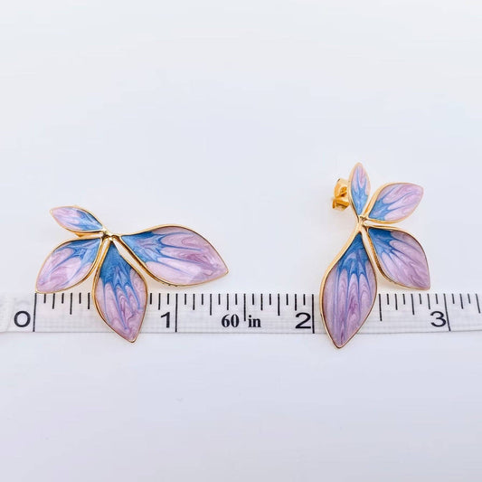 Colored Enamel Leaf Shape Stainless Steel Post Earrings -FGS