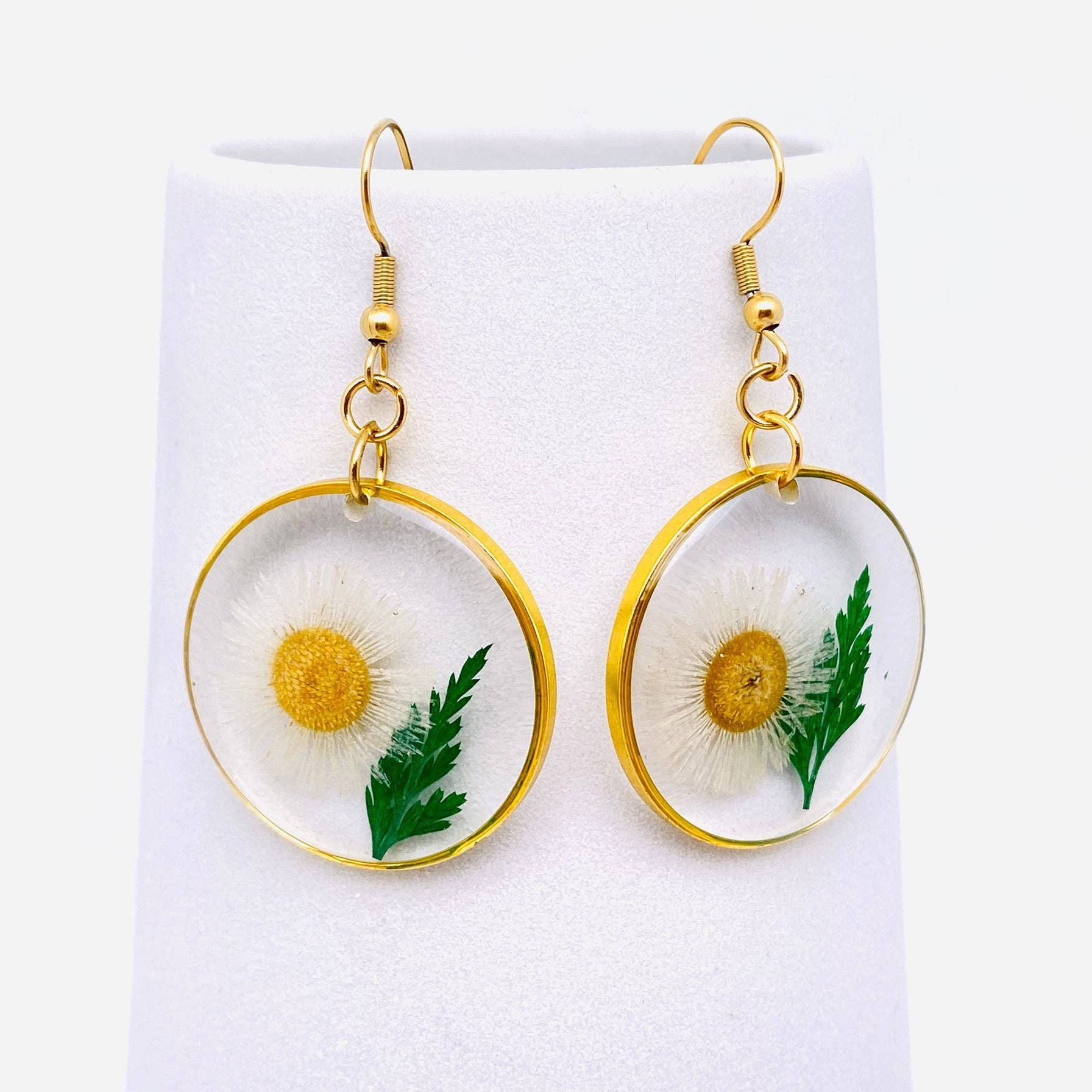 Chrysanthemum & Fern Leaf Dried Flowers Round Earrings - PDF